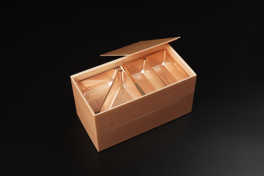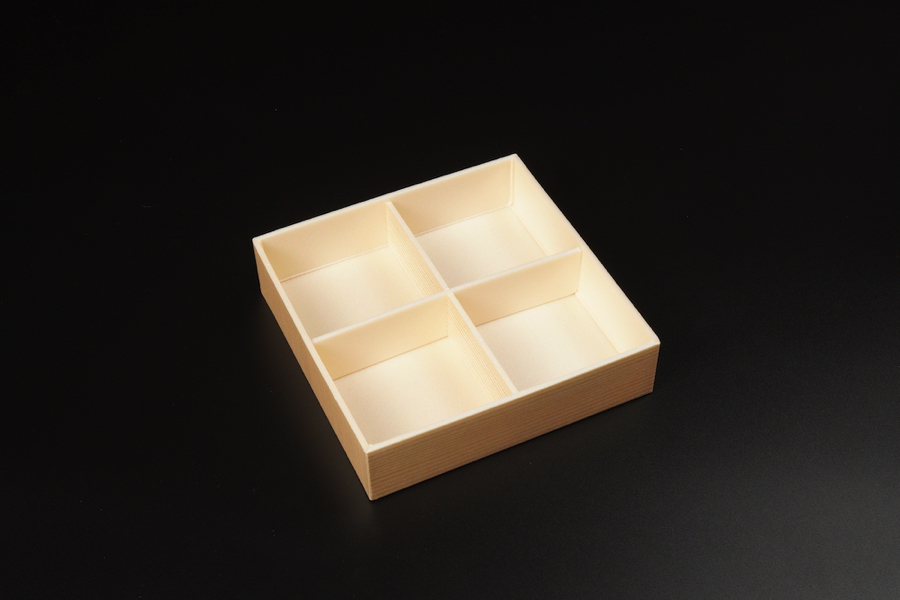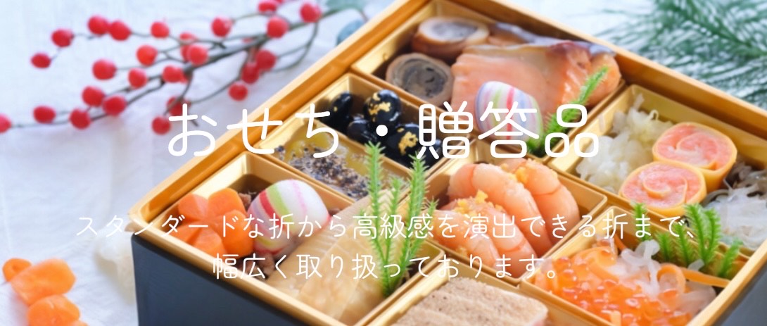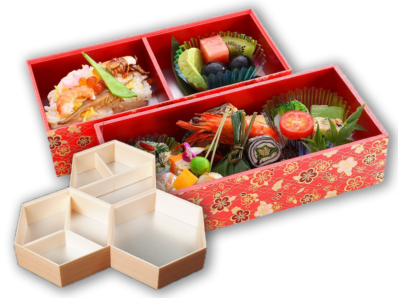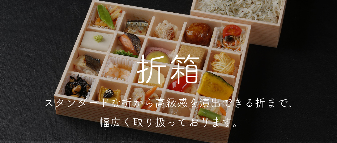 今年はプラスチック製折箱に加え、紙製重箱、木製重箱もラインナップに加わりました。