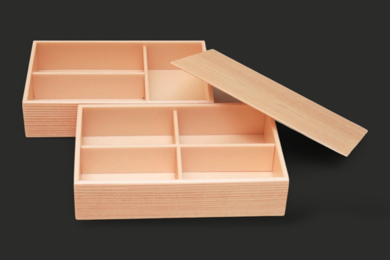 【2段 木目柄 長方形折 十字仕切・T字仕切・のせ蓋付 24入】
