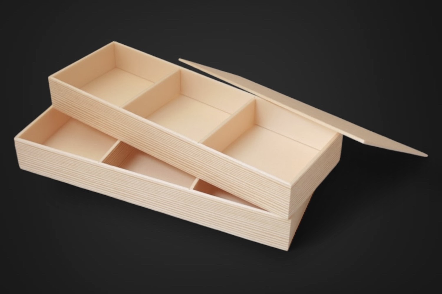 【木目65折 十字仕切・しゃくり蓋・小鉢65X4個付 30入】